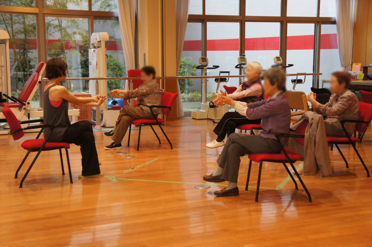 ギャラリー杜の音では毎週月曜日、入居者様向けに“ 椅子ヨガ ”教室を開催しております。