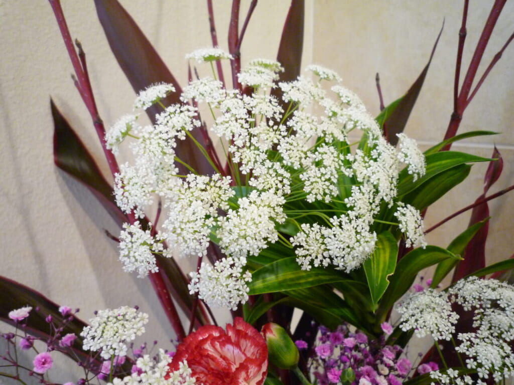 白い繊細な小さな花がふんわりと集まって咲く豪華なレースのような花姿から「レースフラワー」「ホワイトレースフラワー」の名が付いたそう。確かに見た時に目を惹きますね。とても素敵です。