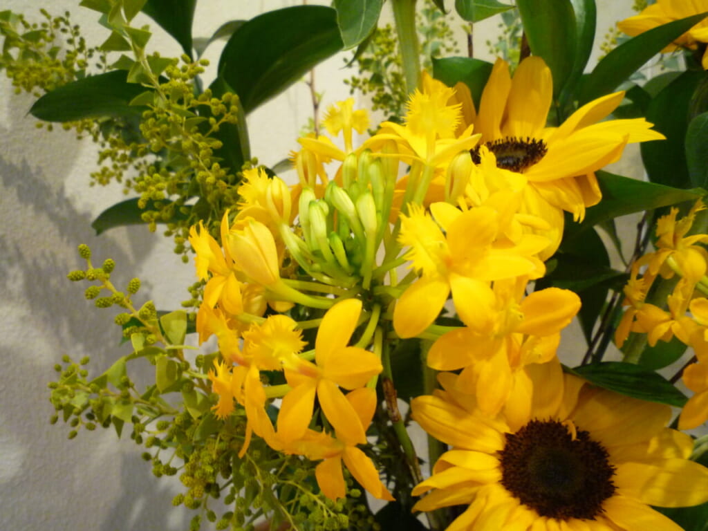 中南米に広く分布するランで、もともとはオレンジ色が主流でしたが、品種改良が進むにつれて赤、黄色、ピンク、白などの色も増えて、ボール状に咲く花を楽しむことができるようになったそうです。花持ちもいいそうなので、フラワーアレンジや花束の花材として人気があるんだとか。確かに丸い形が可愛いですね。